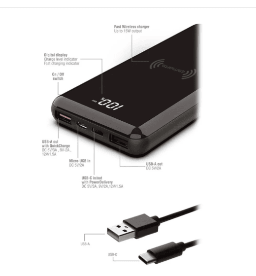 Aansluitingen | USB-A, USB-C, Wireless (Qi) |